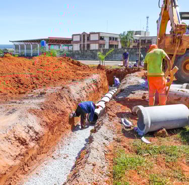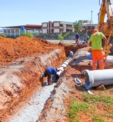Realizamos pavimentação e drenagem em condomínios, além de estações de tratamento de esgoto coletiva e unifamiliar.